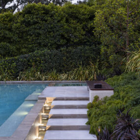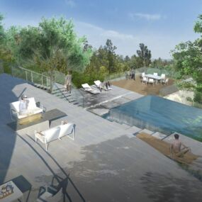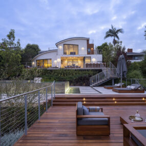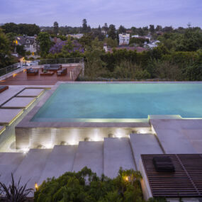 Situated amongst the treetops of the Brentwood hillside, this beautiful home is accentuated by breathtaking scenery and a birds-eye view of the Getty Center. The development of this family abode was both arduous and a dream. The Clients embraced our vision of a warm, contemporary landscape to emphasize the well-thought architecture of their newly constructed home. They desired ample space for outdoor living and entertaining, with luxurious and notable design elements.