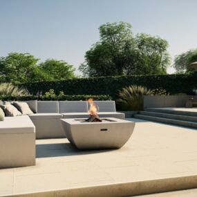 By night, the terraces transform into glowing outdoor rooms. Subtle lighting highlights pathways, planting edges, and gathering zones, ensuring safe circulation while creating an inviting atmosphere for evening dining, fireside conversation, or open-air cinema at the outdoor theater.