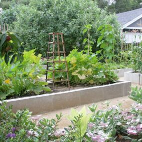 Our Client came to us with what sounded like an ambitious vision, to one day never set foot in a produce market in that all of their fruit and vegetable needs could be harvested from their garden. The thing of it is, we’re not talking about a limited palette of standards here! Our Client’s son has a culinary background, and they host amazing seasonal soirées for many dozens of friends. We needed to literally create a “garden of all seasons” that would be manageable, decorative, and supply amply!
